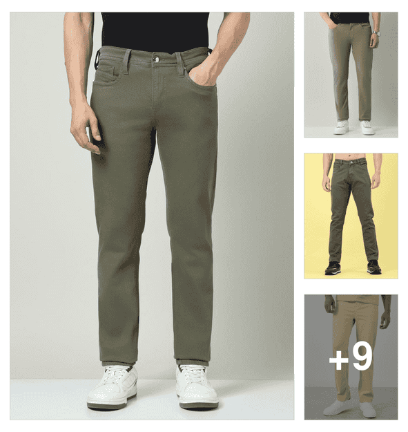 men solid mid rise chinos casual trouser