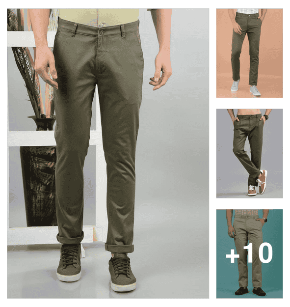men solid mid rise flat front chinos
