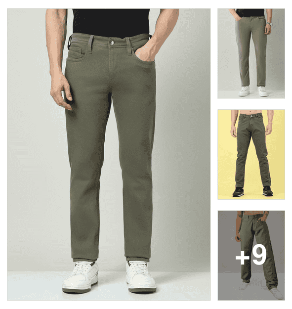men solid mid rise chinos casual trouser