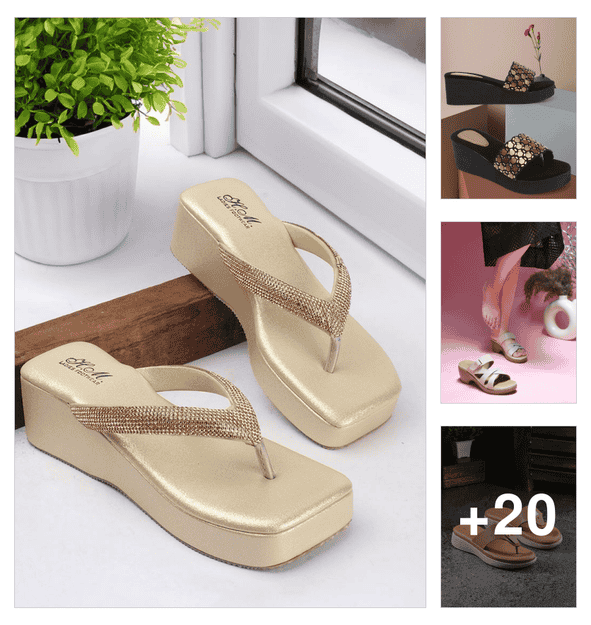 women embellished slip on platform wedge