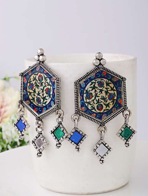 - » silver oxidised multi color printed drop earrings