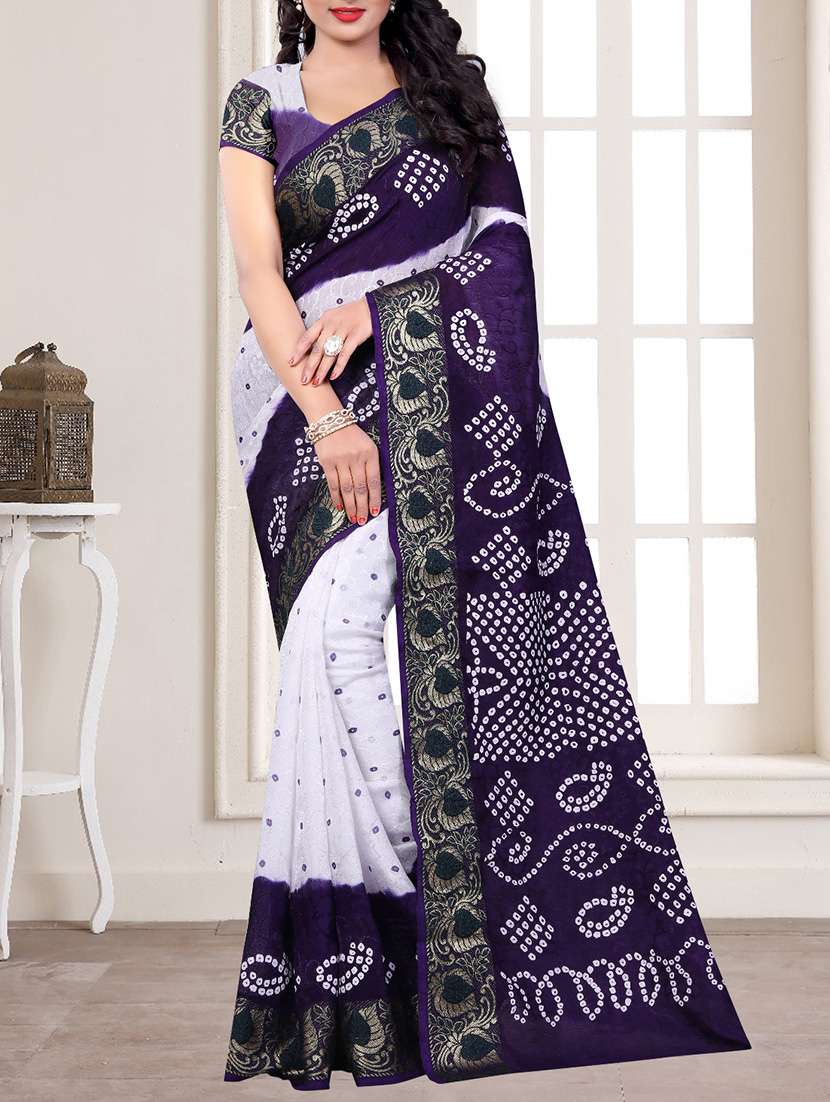 white art silk bandhani saree with blouse