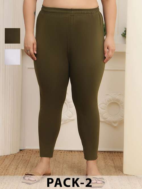 Upgrade your collection of warm-weather staples with these Solid Plus White and Olive Leggings combo by Valles365. Pair them with a flowy tee and lace-up sandals for a super chic look.