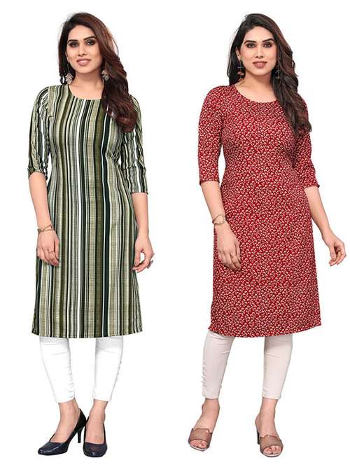 - Grab this beautiful kurta made up of crepe fabric featuring round neck designs.
