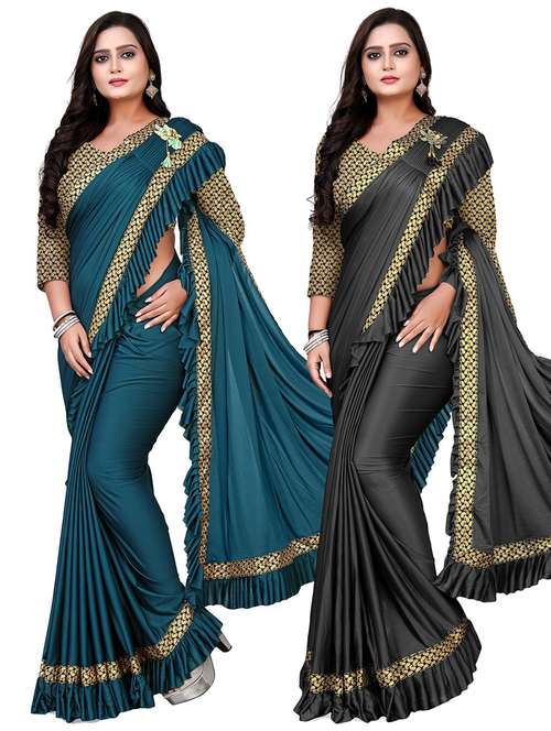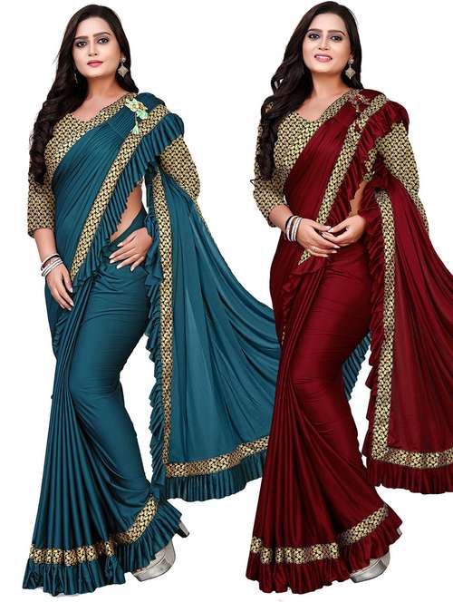 pack of 2 solid woven saree with blouse