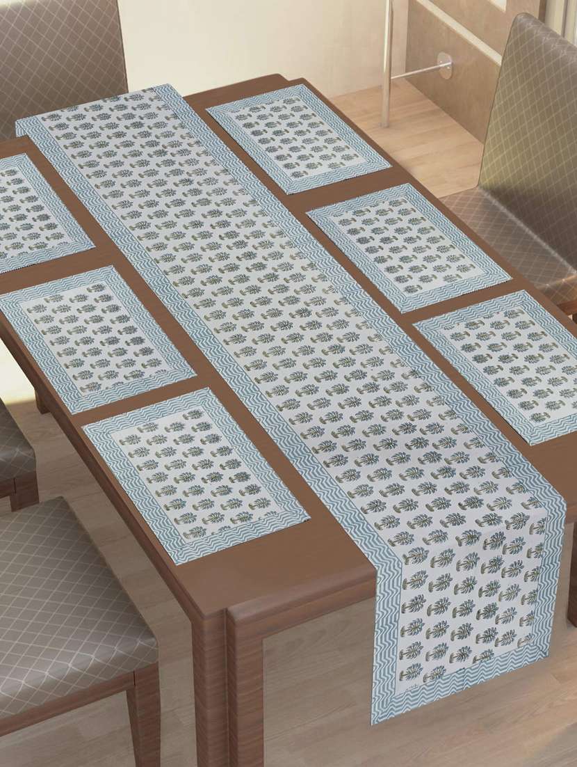 - » texstylehome thick cotton canvas jaipuri block print 6 table mats and 1 runner set