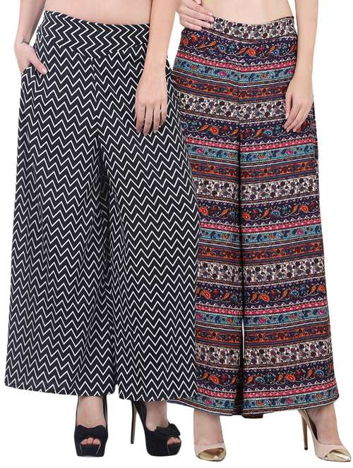set of 2 printed crepe palazzo