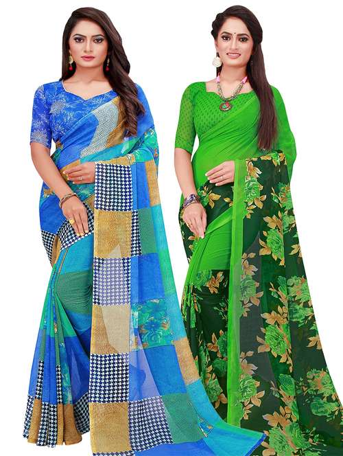 pack of 2 printed sarees with blouse - 18501773 -  Standard Image - 0 pack of 2 printed sarees with blouse - 18501773 -  Zoom Image - 0