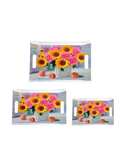 melamine design - square rose sunflower (3 pcs) serving tray (large, medium & small)