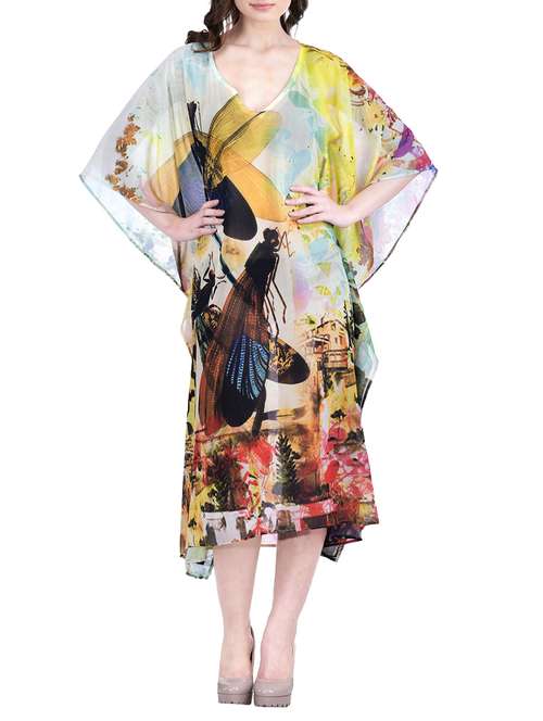 - » multi colored relax fit sheer printed kaftan dress