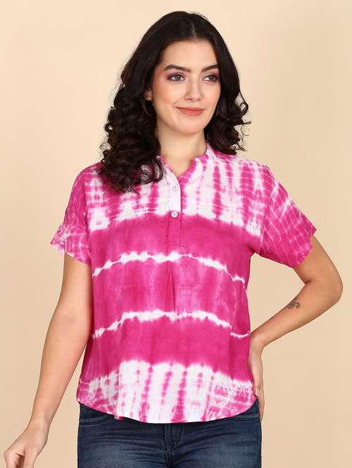 women tie & dye short sleeve regular top