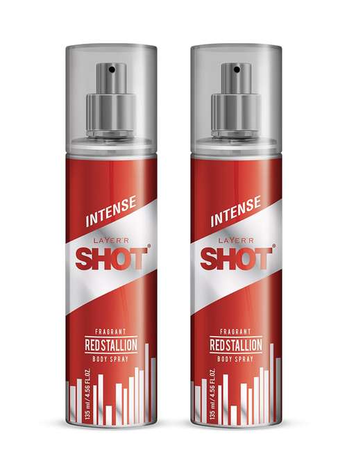 LAYER'R Shot Red Stallion Lasting Body Spray - For Men (135 ml, Pack of 2)
