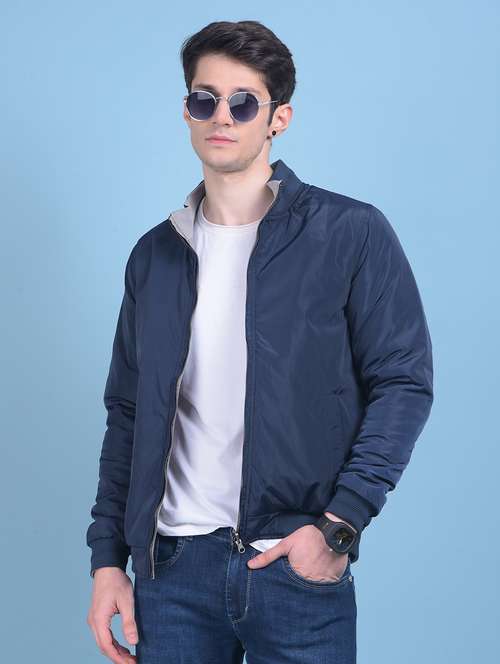 navy blue polyester casual jacket