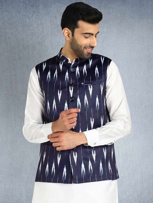 - » navy blue printed nehru jacket