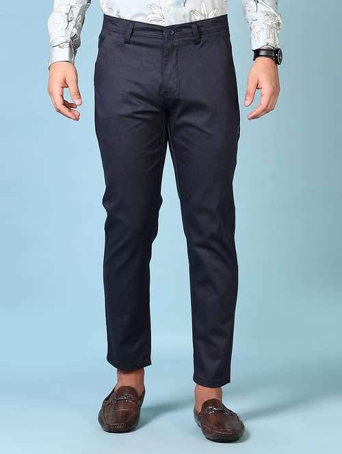 - » men solid mid rise flat front casual trouser
