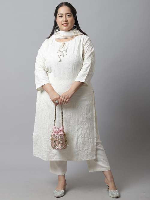 - Find gorgeous sets of ethnic wears in trending designs in off white colors suitable for festive wear of occasions.