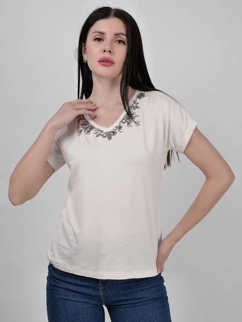 - » women embellished short sleeves regular t-shirt