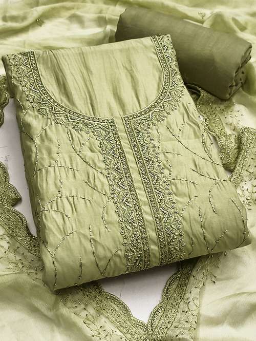 - Look ultra gorgeous in unstitched suits from Manvaa and grab these beautiful suits in lime colour.