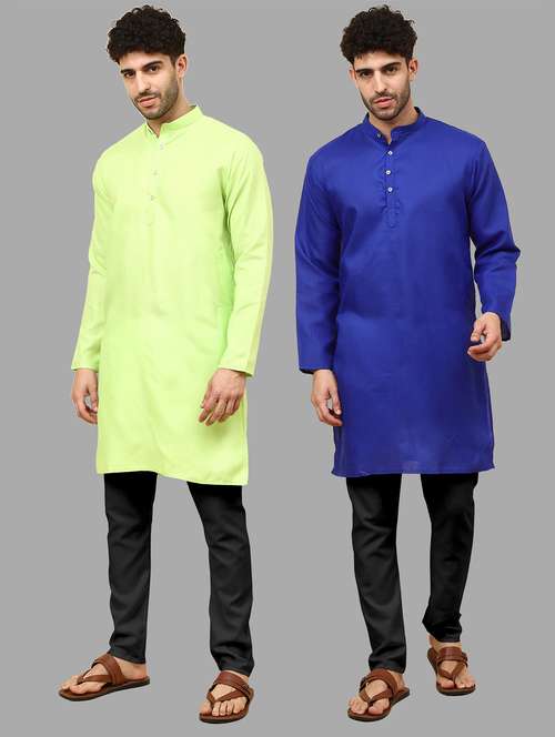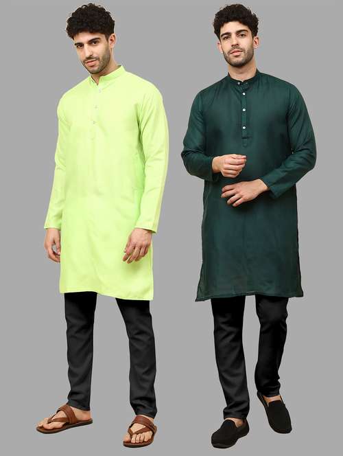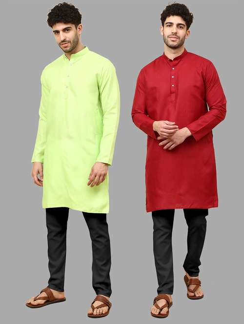 - » men pack of 2 solid mandarin neck kurta pyjama ethnic wear set