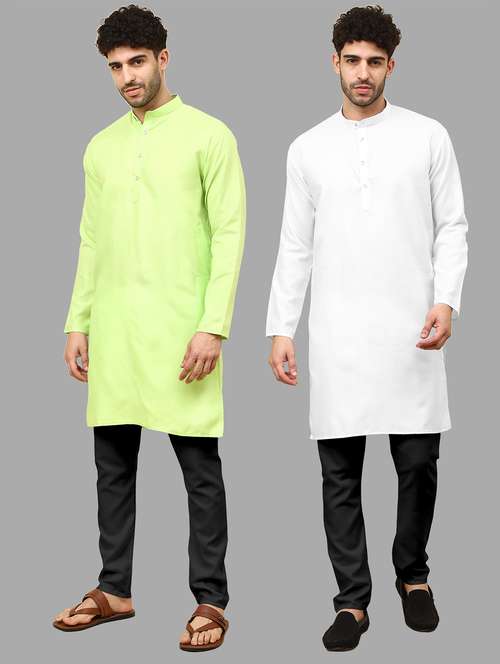 Pack Of 2 Mens Simple Stright 2 Kurta And 2 Black Pyjama Only