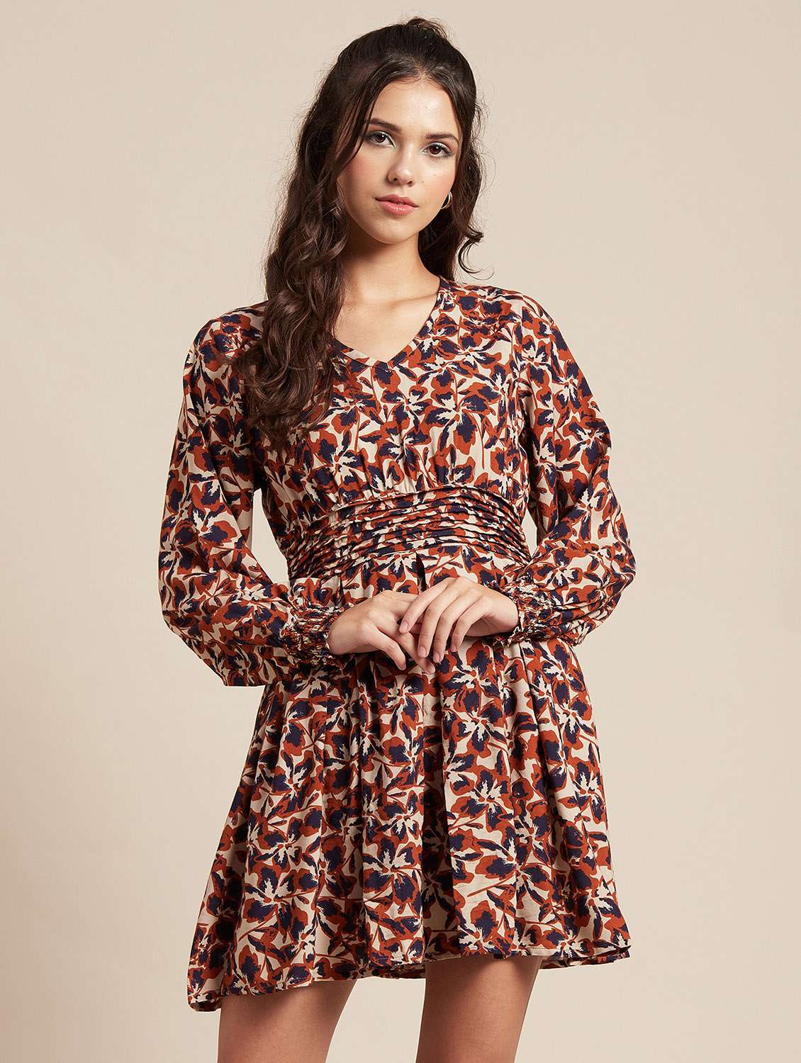 *Includes: This Clothing Consists Of 1 Dress (Any Accessories Worn By The Model Are Not For Sale)*Material: Viscose Rayon *GSM: 119*Dress Length: 32 Inches (Approx.)*Model Stats: The Model In The Image Is 178 Cm Tall, And Bust 34\ Inches Is Wearing Size - (S) Small*Features: Long Balloon Sleeves, Flared Hem, V Neck, Pleated Waist, Short Length, Lightweight And All Over Printed Pattern*Care: Medium Machine Wash, Warm Iron, Iron While Damp. (After Washing Do Not Dry The Fabric On High Heat And Do Not Dry Fully. Medium Heat Is Best And Removes Just Prior To Being Completely Dry)*Size Information: Please Refer To Our Size Chart Before Making The Purchase. If Your Size Is In Between Two Sizes, We Recommend That You Choose A Larger Size.*Tags: Printed Dresses For Women, Long Sleeves Short Dress, V Neck Dresses For Women, Smocked Waist Dresses For Women, Mini Dresses For Girls, Short Dresses For Summer, Beach Dresses, Resort Wear 2023