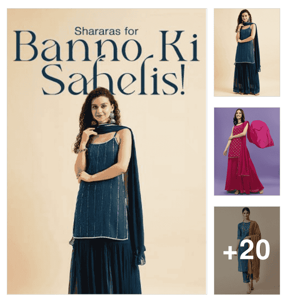 women three quarter sleeve kurta sharara with dupatta set