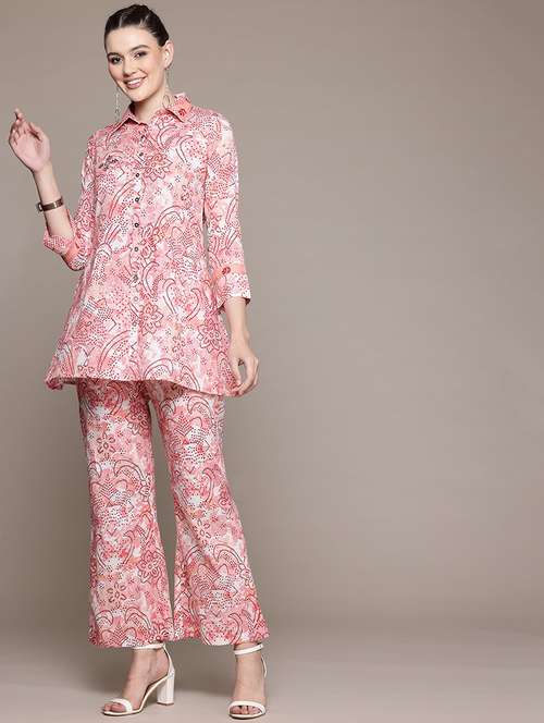 - » women floral print shirt and trouser co-ord set