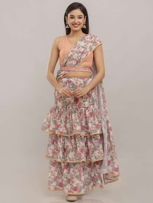 - » women floral printed pre-drape lehenga