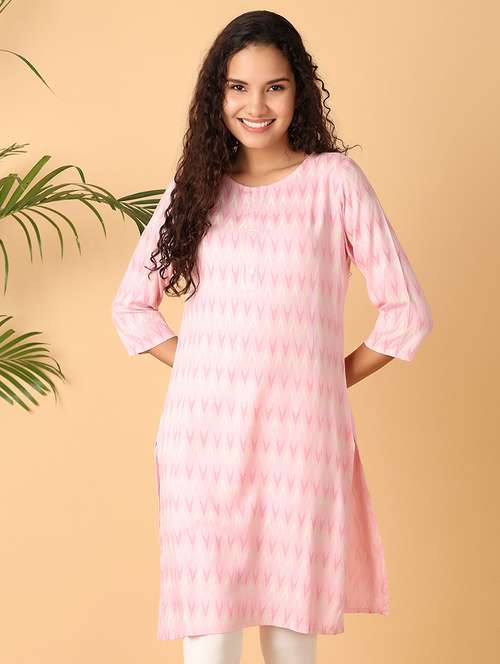 - Grab this beautiful kurta made up of rayon fabric featuring round neck designs.