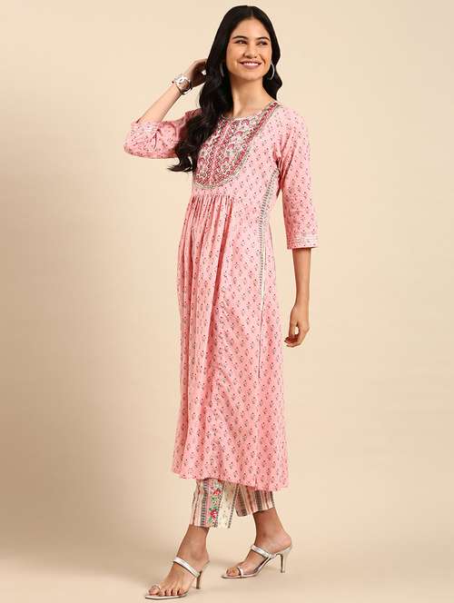 - Find gorgeous sets of ethnic wears in trending designs in pink colors suitable for casual wear of occasions.