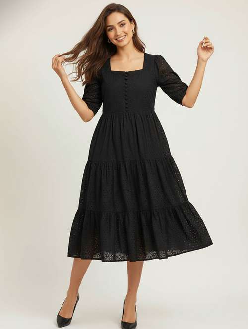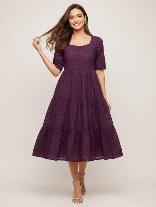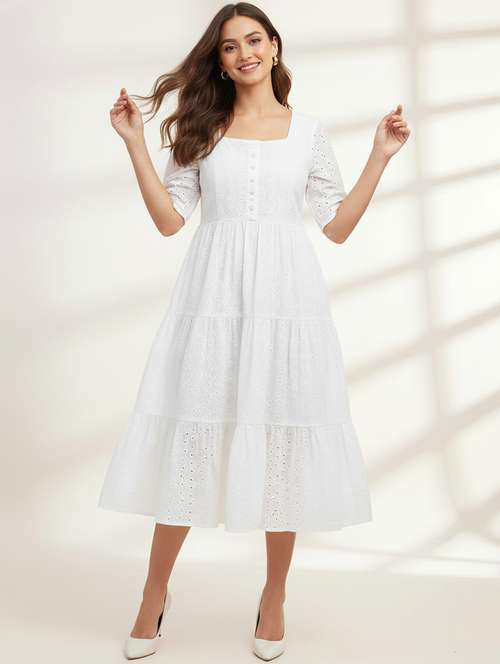 Beautiful schiffli embroidered dress designed with intricate threadwork for a timeless ethnic appeal