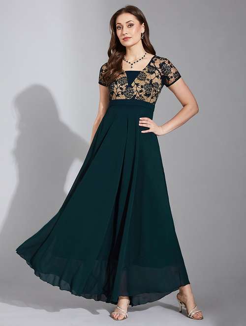 - Dress up in a soothing pattern and don this dress made of georgette material.