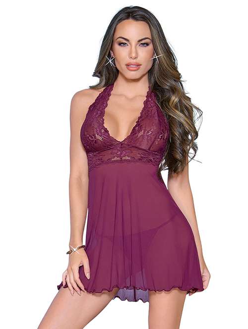 - » women solid halter neck lace babydoll
