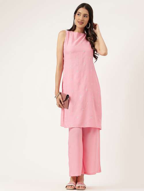 - » women embroidered sleeveless kurta palazzo set