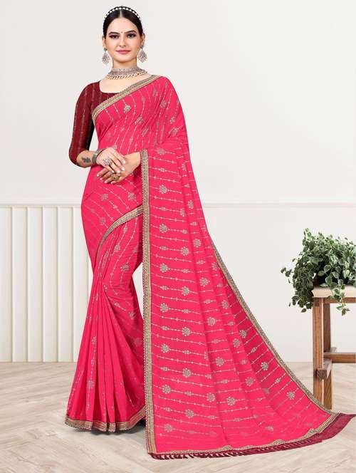 - » women solid with work embroidered saree with blouse