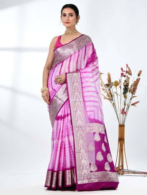 Add a touch of elegance to your wardrobe with this stunning Pink & White Silk Blend Saree. Featuring a beautiful tie & dye pattern, the saree gracefully transitions from soft pink to white, creating a mesmerizing and sophisticated look. The rich silk blend fabric ensures comfort and a luxurious feel, making it perfect for both festive and formal events. The saree is enhanced by an intricately designed border, adding an exquisite traditional touch. Pair it with your favorite jewelry and accessories for a complete ensemble that radiates grace and beauty.