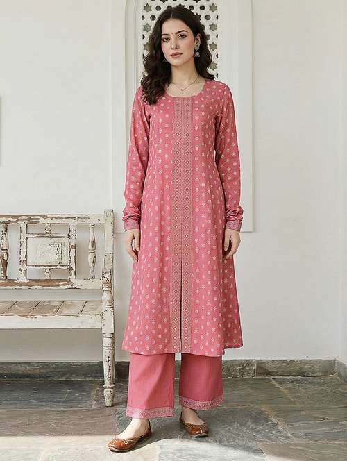 - Find gorgeous sets of ethnic wears in trending designs in pink colors suitable for casual wear of occasions.