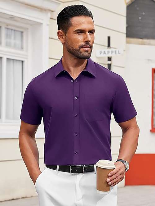 - » men solid short sleeve regular fit casual shirt