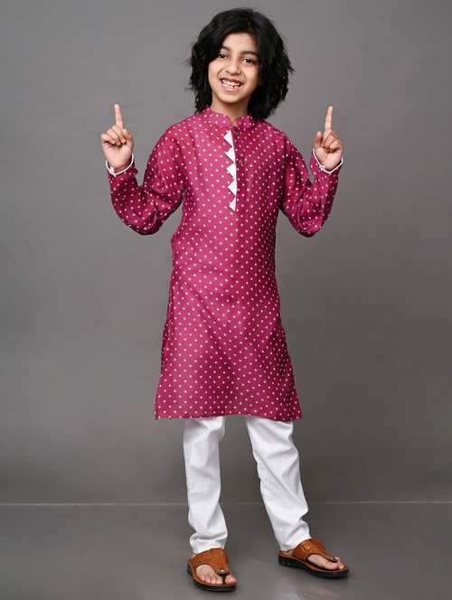 boys printed cotton kurta pyjama set