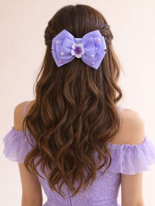 Add a touch of elegance to your hairstyle with this beautiful Purple bow hair clip featuring a delicate flower center and pearl detailing. Designed in a trendy Korean-inspired style, this hair accessory is perfect for everyday wear, parties, school, or special occasions. It offers a secure grip while enhancing your look with a soft, feminine charm.