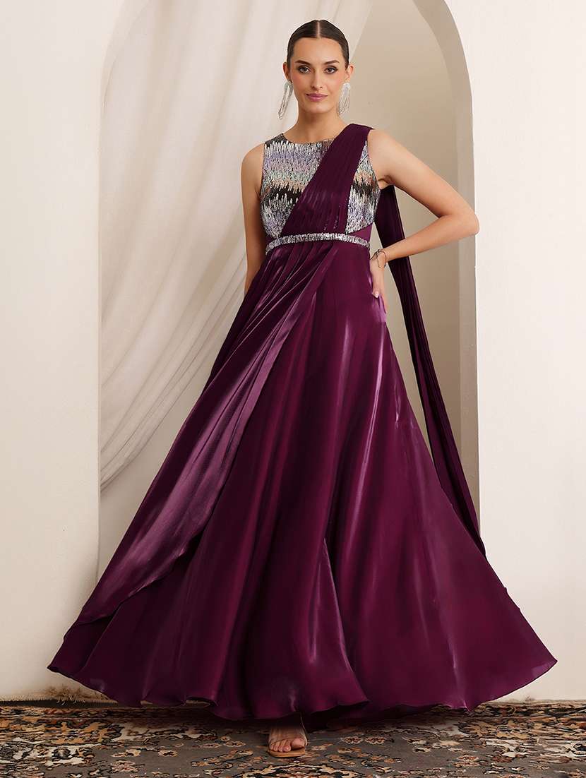 - LimeRoad brings to you the classic range of satin ethnic dresses handcrafted with sequin art to give you an effortless traditional look.