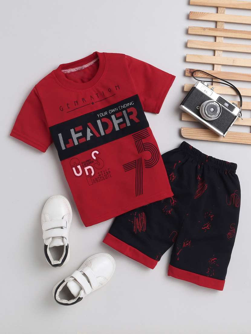 - » boys round neck printed shorts set