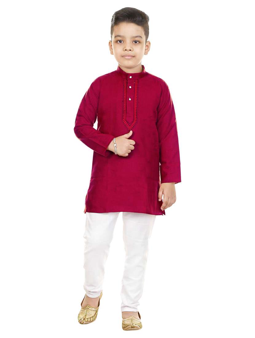 - » maroon mandarin neck solid kurta pyjama set