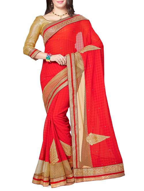 - » red chiffon embroidered saree with blouse