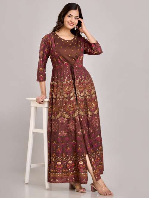 - LimeRoad brings to you the classic range of rayon ethnic dresses handcrafted with embroidered art to give you an effortless traditional look.