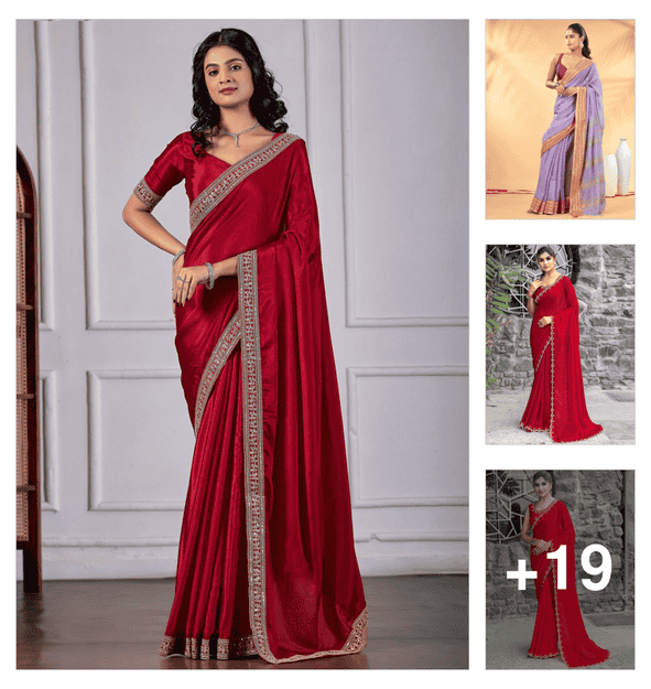 red saree with golden border