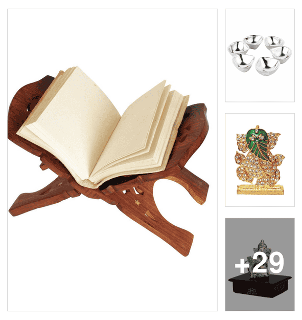 brass puja roli chawal, elaichi, mishri 4 bowl stand