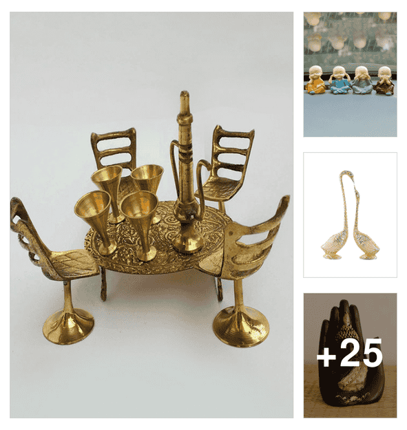 brass puja roli chawal, elaichi, mishri 4 bowl stand