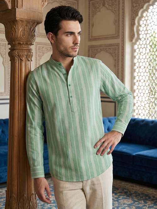 - » men striped mandarin neck short kurta
