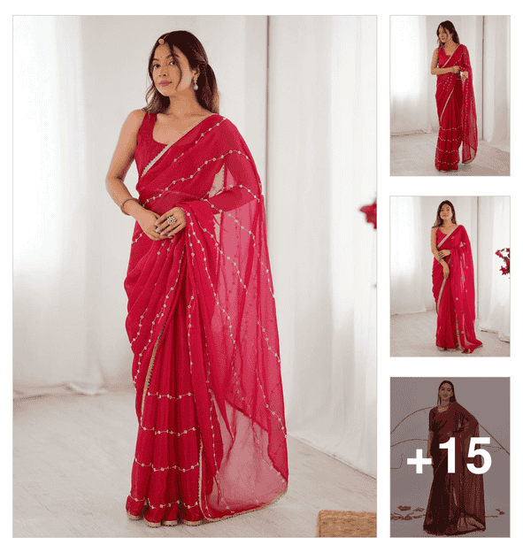 red printed saree with blouse